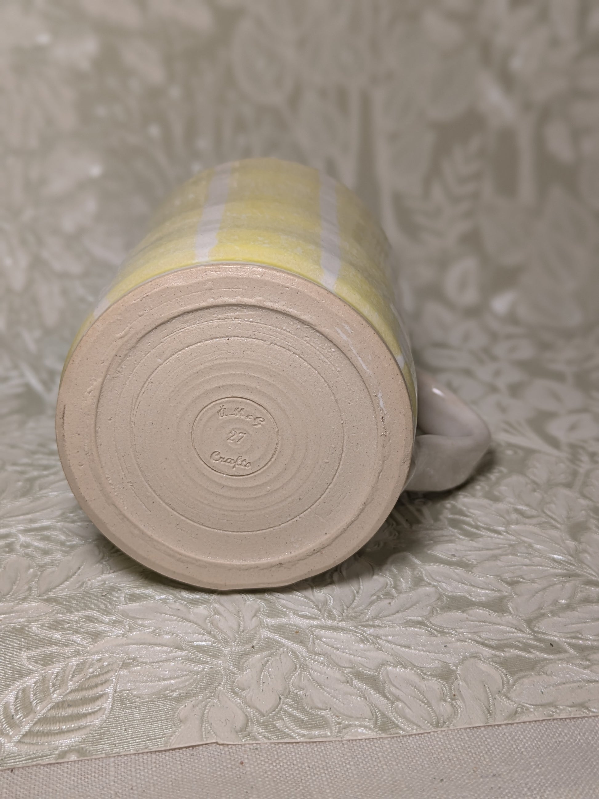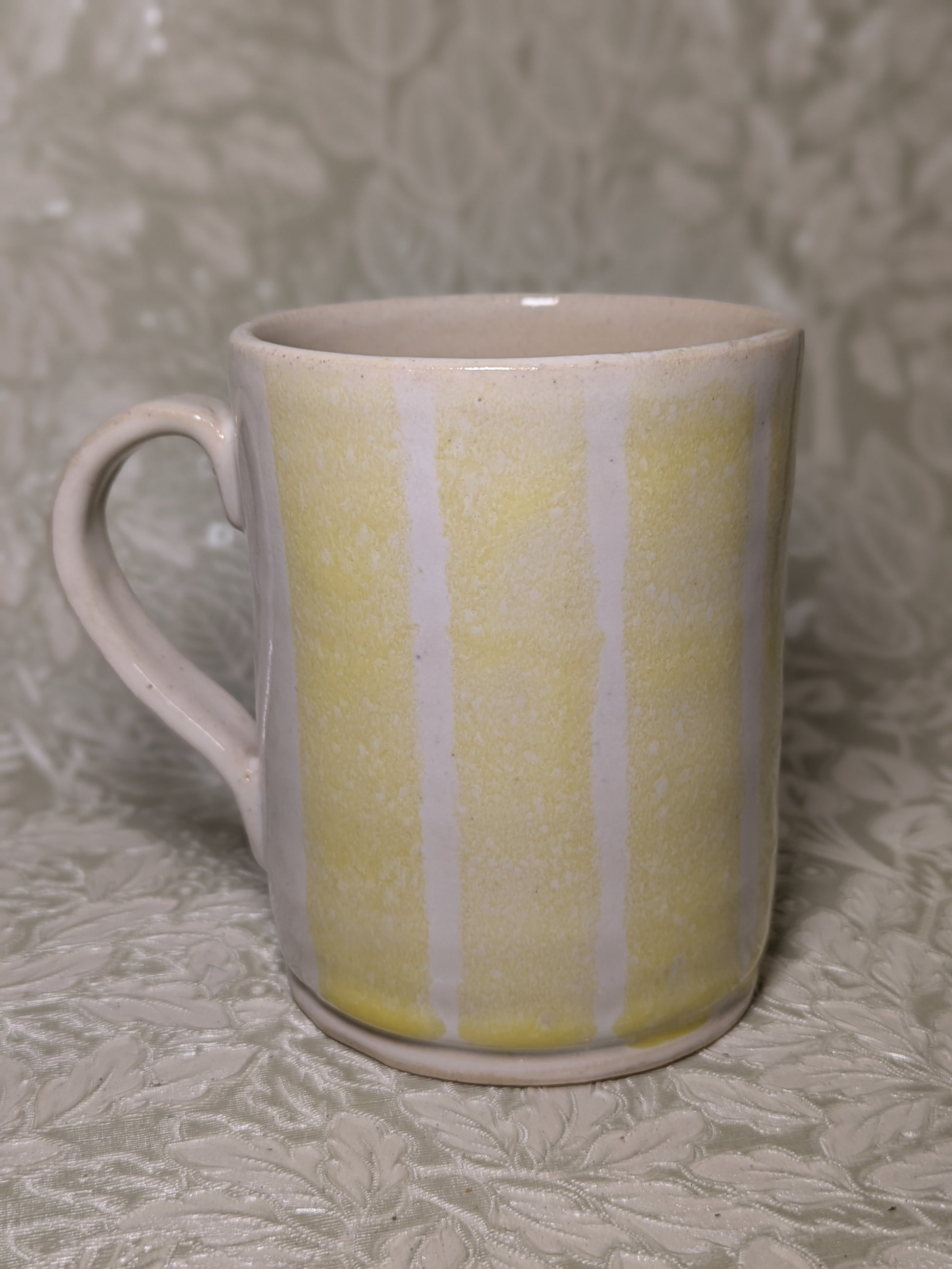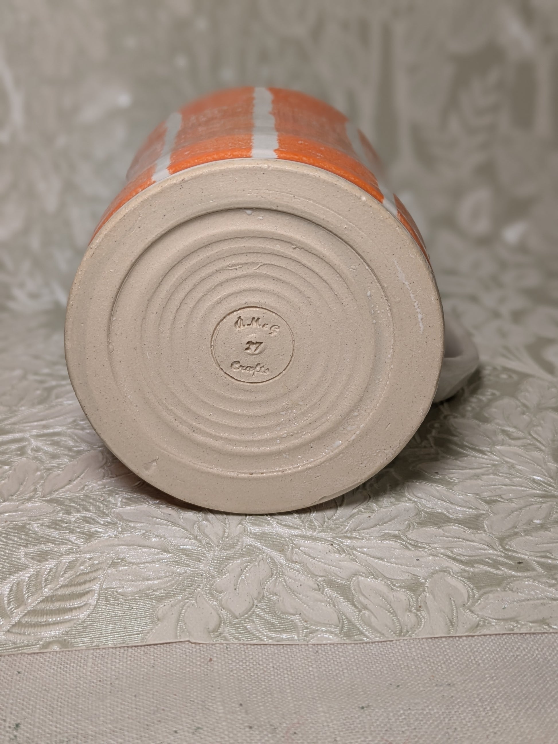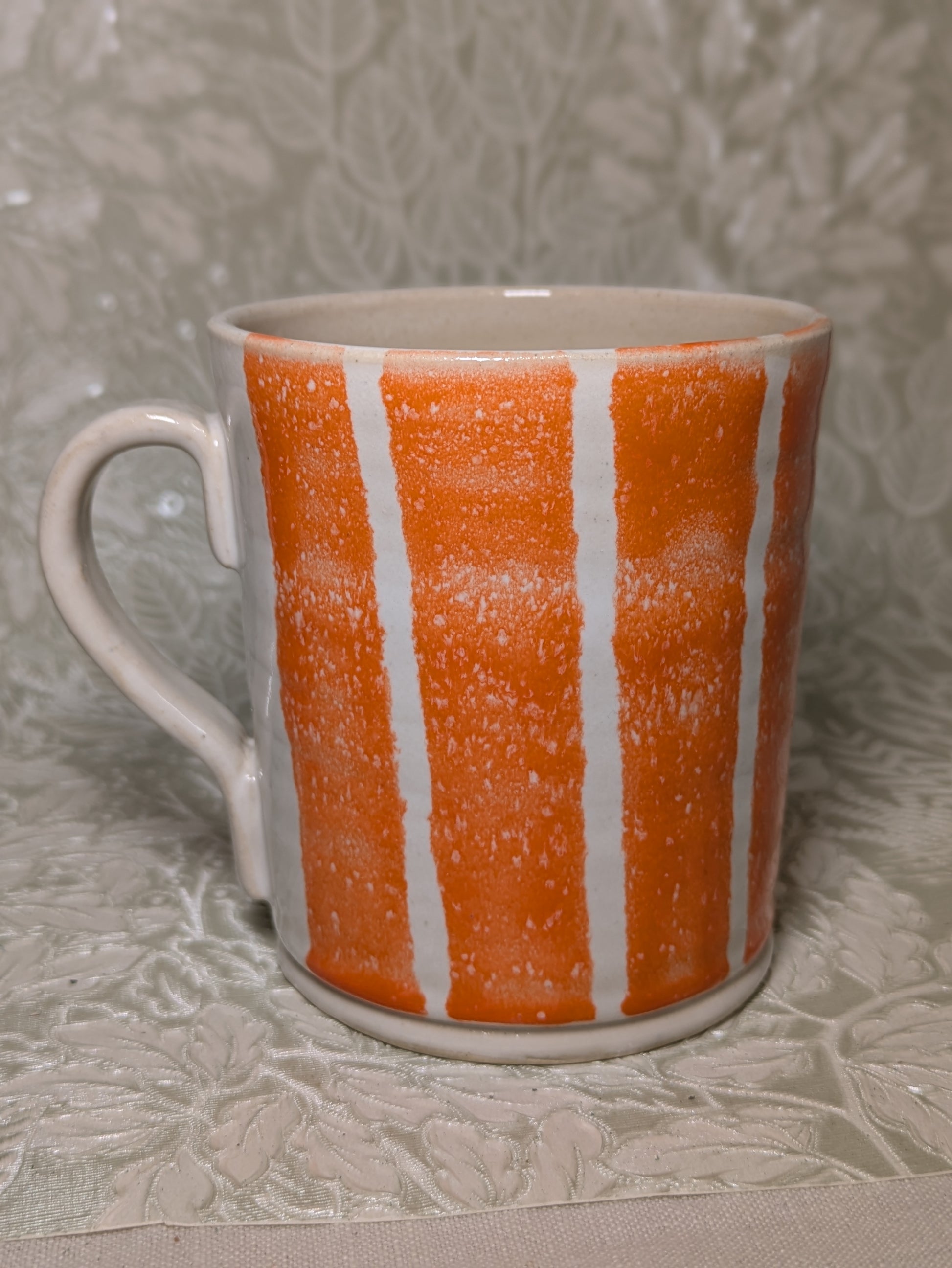 Candy Cane striped mugs. These are seconds, which means that each one has a slight aesthetic flaw either on the base or on the outer glaze.