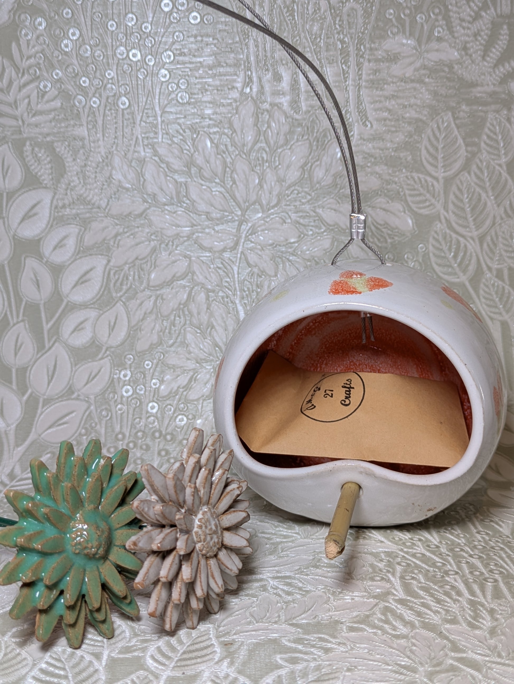 This bird feeder has been handcrafted on the potters wheel.