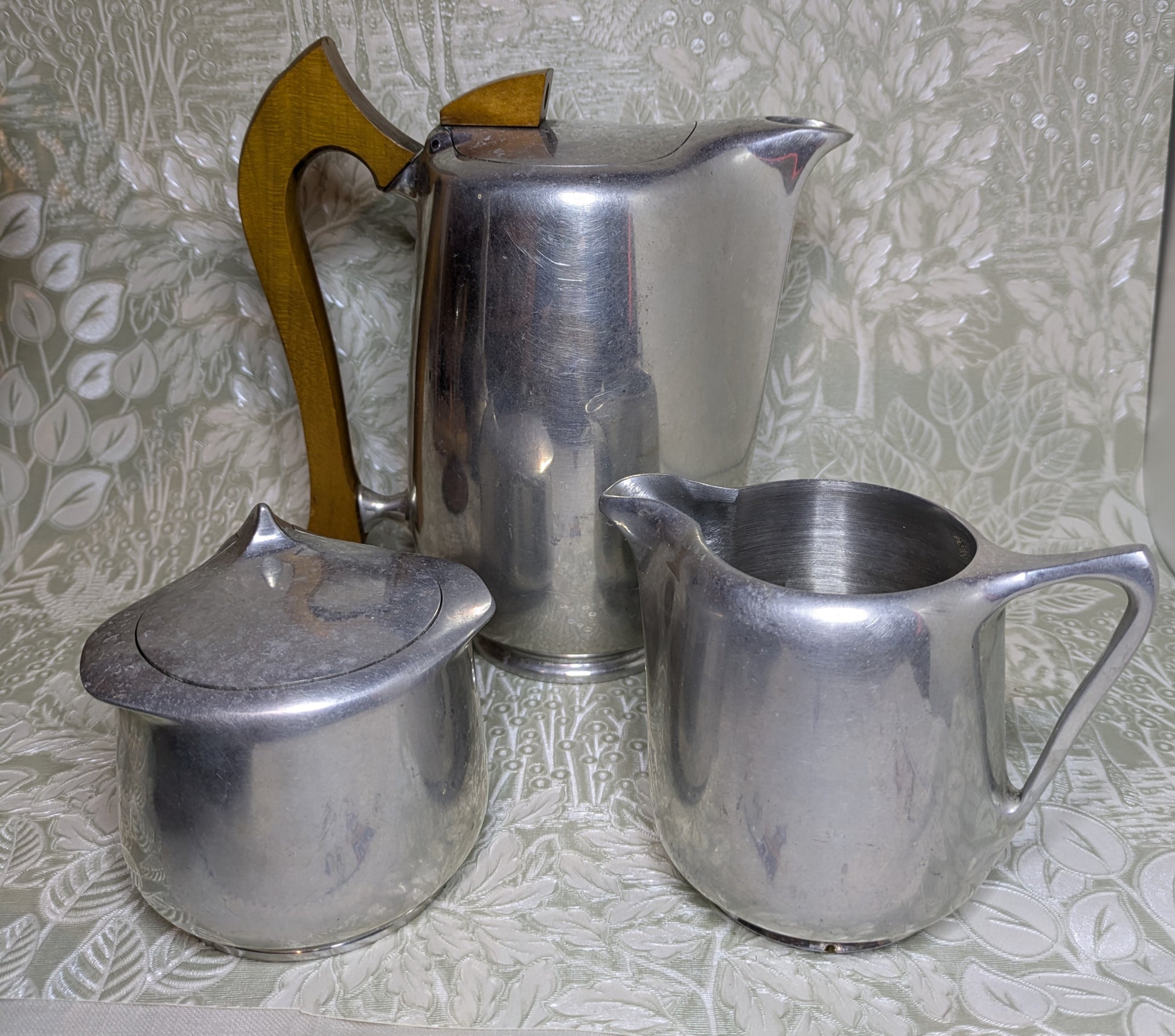 Vintage Picquot Ware England Wooden Handle Coffee Pot Creamer and Sugar